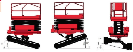 ● Гусеничное шасси может быть выровнено в соответствии с разной высотой дорожного покрытия.
