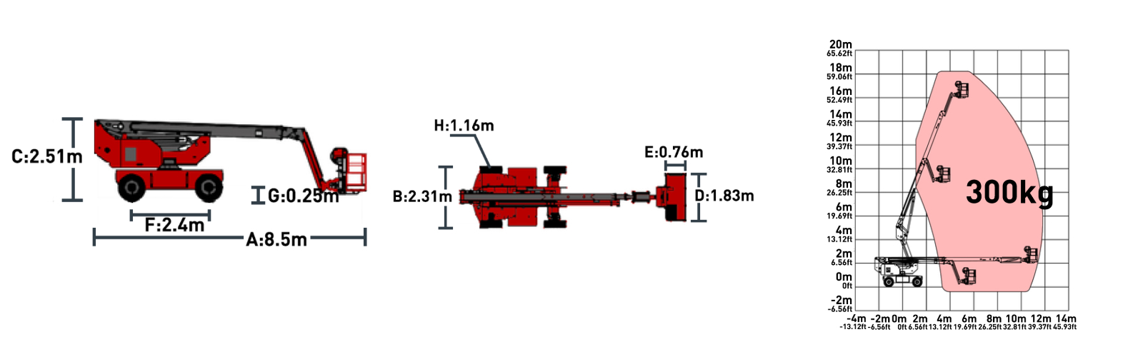 The HERED HT16JE electric telescopic boom lift has a maximum working platform height of 16.2 meters and a maximum load capacity of 300kg. Extendable booms provide industry-leading working heights, empowering you to tackle even the most difficult tasks with ease. Zero emissions and low noise contribute to a cleaner, quieter work environment.