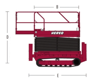 The HERED HC1216E-R Crawler Scissor Lift has a maximum working platform height of 11.8 meters and a maximum load capacity of 320 KG.